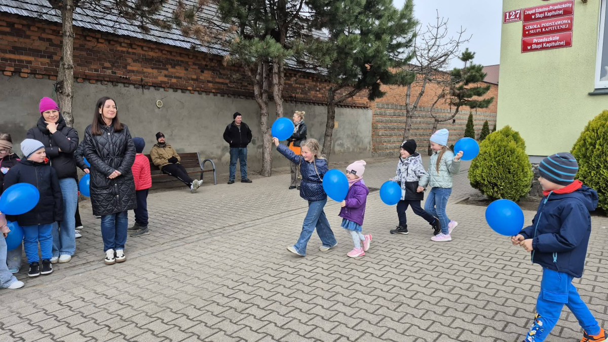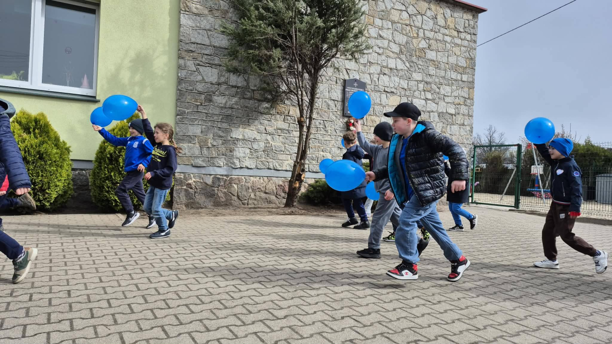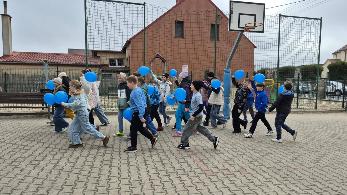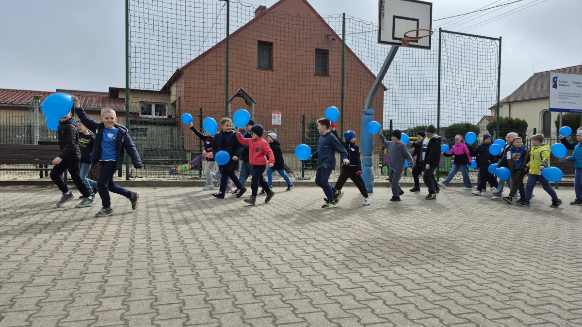 Drugą częścią obchodów był Bieg dla Autyzmu z niebieskimi balonami, w którym udział wzięły przedszkolaki oraz uczniowie klas 1–3 i 4–8. Wspólny bieg był pięknym wyrazem solidarności z osobami w spektrum autyzmu oraz symbolem akceptacji, wsparcia i jedności.