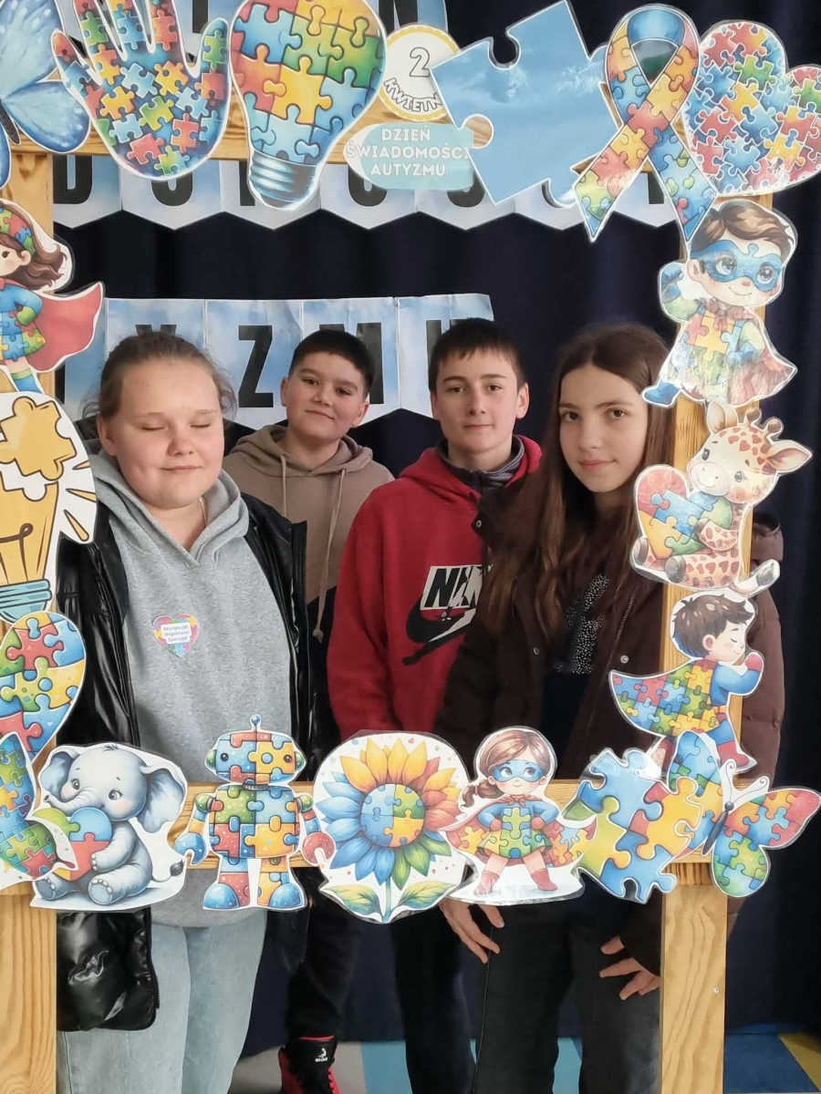 Tego dnia w naszej szkole odbył się również dzień bez dzwonka, aby zwrócić uwagę na potrzeby osób wrażliwych na dźwięki i hałas. Dodatkową atrakcją była specjalnie przygotowana fotobudka, w której uczniowie mogli zrobić pamiątkowe zdjęcia. Każdy otrzymał także odznakę-serduszko z napisem: „Akceptuję, wspieram, szanuję”.