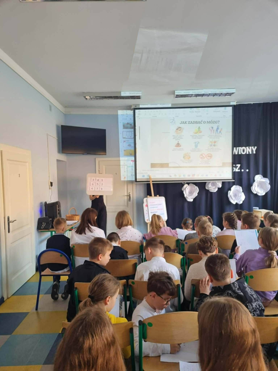 W czwartek w naszej szkole obchodziliśmy Europejski Dzień Mózgu. Celem święta było upowszechnianie wiedzy i informacji na temat mózgu, który jest jednym z najbardziej fascynujących i tajemniczych narządów człowieka. Uczniowie zapoznali się z informacjami i ciekawostkami dotyczącymi pracy mózgu. Przedstawione zostało znaczenie mózgu w codziennym życiu oraz sposoby dbania o jego prawidłowe funkcjonowanie. Uczniowie dowiedzieli się, jak ważne są zdrowa dieta, odpowiednia ilość snu, aktywność fizyczna oraz unikanie używek. Wykonano gazetkę profilaktyczną z tematyką dotyczącą mózgu. Czas upłynął również na na zabawach, które pobudzały wyobraźnię i umiejętność logicznego myślenia. Nie zabrakło również aktywności ruchowych, które pozwoliły uczniom lepiej zrozumieć, jak ważna jest współpraca ciała i umysłu.