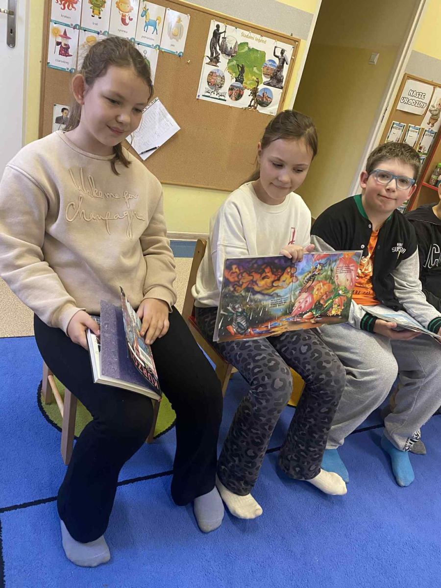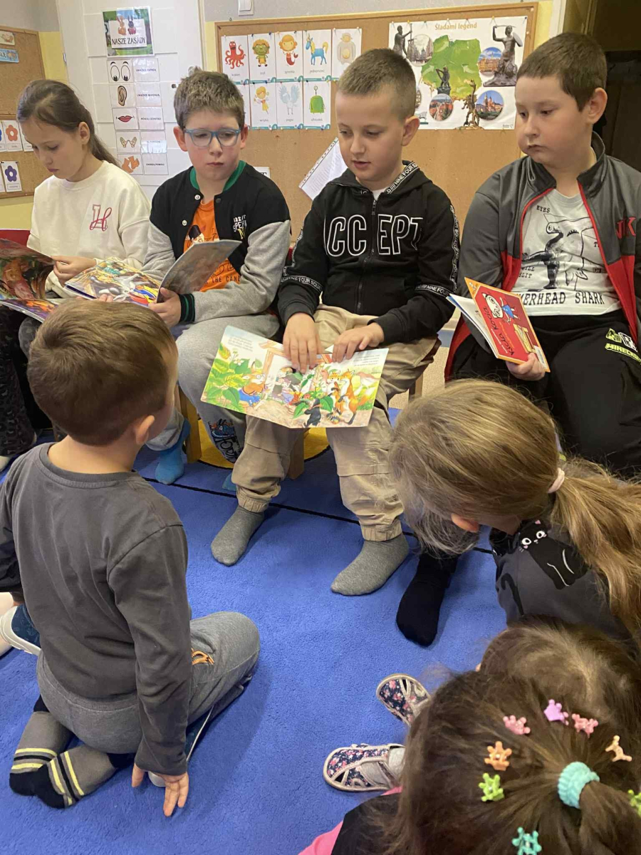 Październik miesiącem głośnego czytania, dlatego klasa III zaangażowała się w tę akcję i uczniowie odwiedzili przedszkolaków, żeby poczytać im bajki, doskonaląc tym samym technikę czytania i przełamując tremę przed występami; przedszkolaki z ochotą wysłuchały bajki o Kurzolu, Kici Koci czy śwince Klementynce.