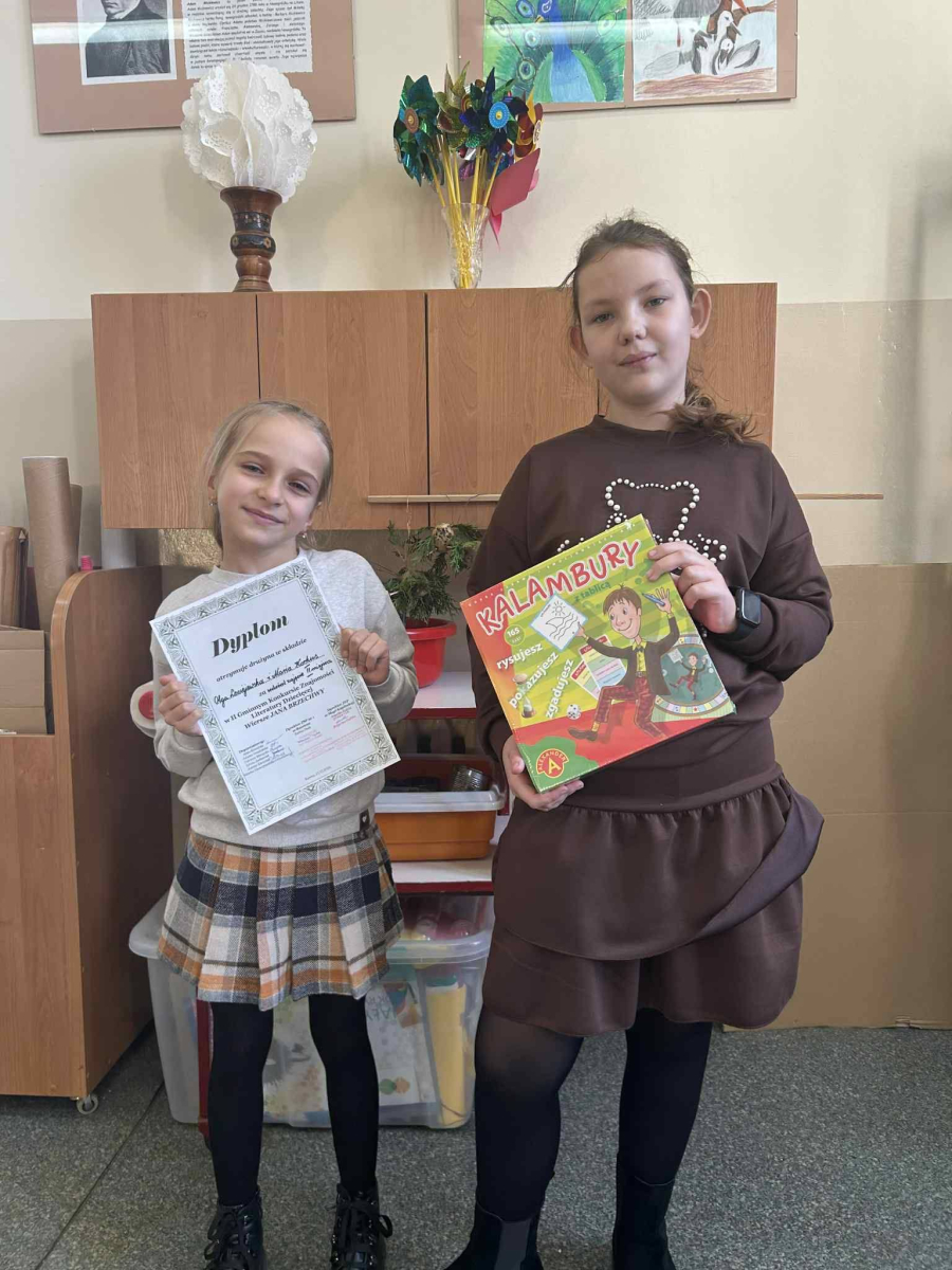 W piątek 12.12 uczennice klasy III,Olga Leciejewska i Maria Korkus reprezentowały naszą szkołę w II Gminnym Konkursie Literackim ,,Wiersze Jana Brzechwy” zajmując w nim II miejsce. Brawo za wytrwałość i determinację!