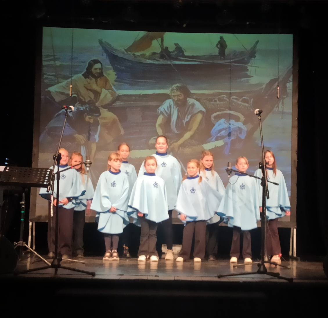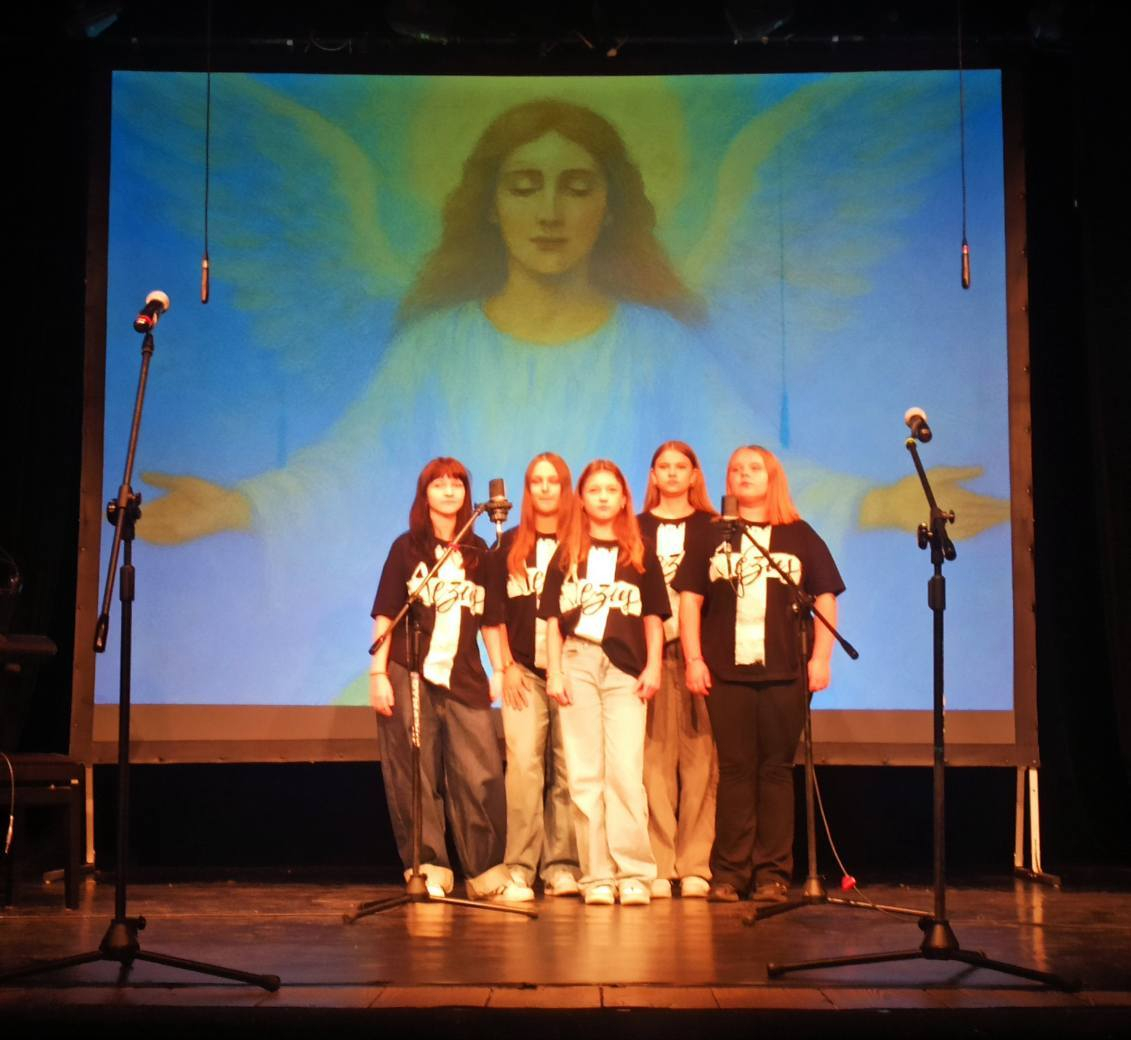 Pod opieką p.Renaty Matyli, zespół kl.II-IV zaśpiewał: "Jestem rybakiem Pana", a zespół kl.VI-VIII " Bo świat, to my".