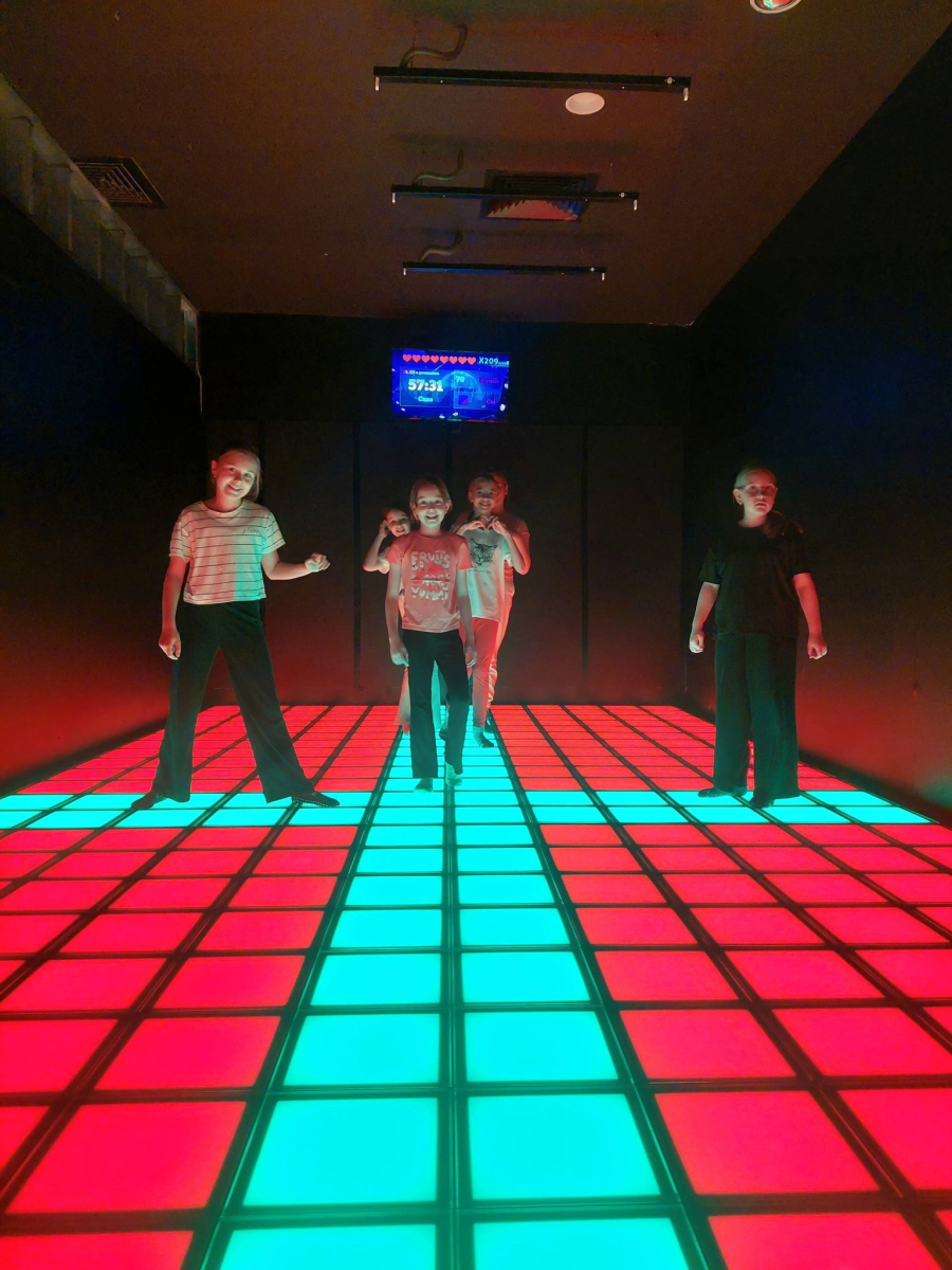 Pierwszym punktem wyjazdu była "Pixelmania ", w której dzieci świetnie się bawiły podczas interaktywnych zadań ruchowych.